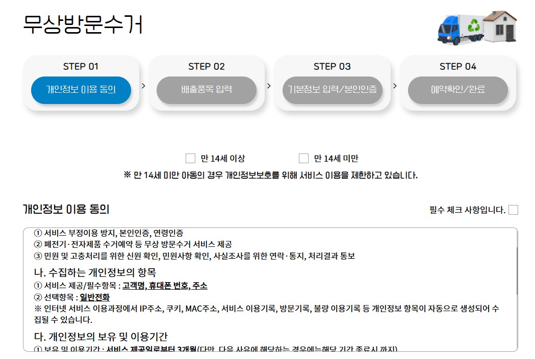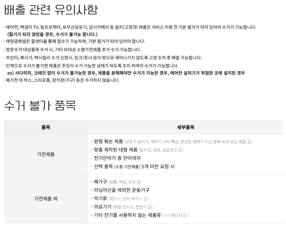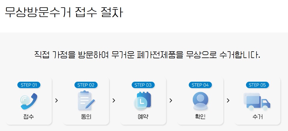 이왕이면 대형가전 1개 이상을 모아 두었다가 한 번에 신청하시면 가장 효율적입니다.