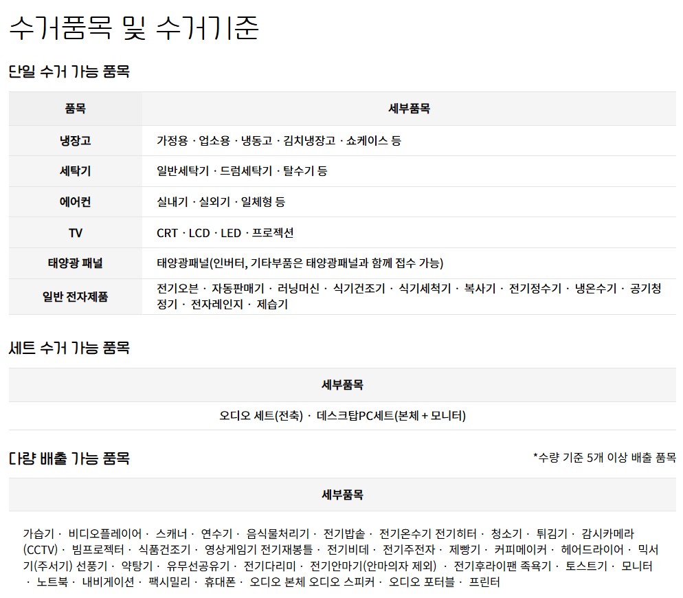 • 대형 가전제품이 1개 이상 포함되어야 무상수거 가능