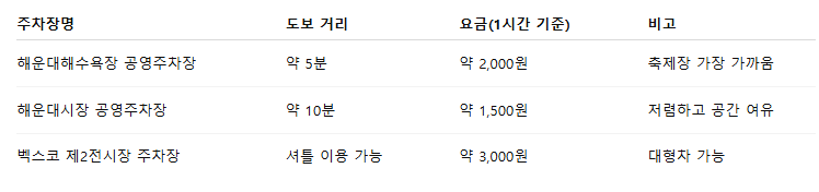 해운대는 부산을 대표하는 관광지인 만큼 교통과 주차가 혼잡할 수 있습니다.
