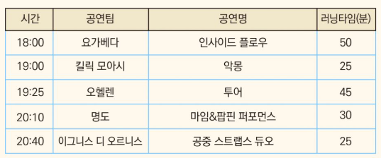 - 평일 프로그램: 오후 7시 ~ 9시