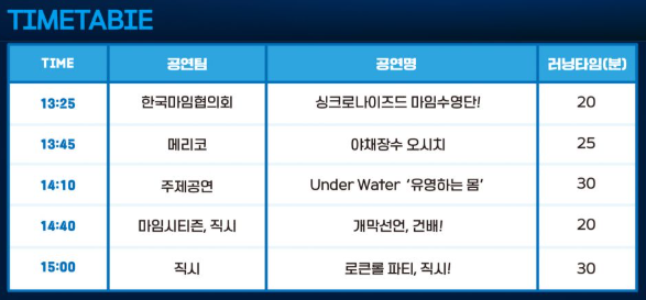 - 주말 개막난장 ‘아!水라장’: 오후 1시 ~ 4시