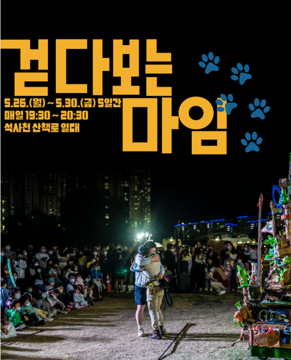 - 주요 내용: 산책로를 따라 이어지는 소규모 마임 공연, 설치미술, 거리극 등
