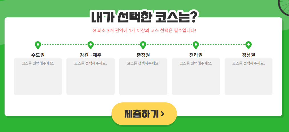 - 최소 3개 권역에 선호하는 코스 선택