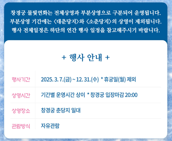 - 행사명 : 2025 창경궁 물빛연화(物빛蓮華)