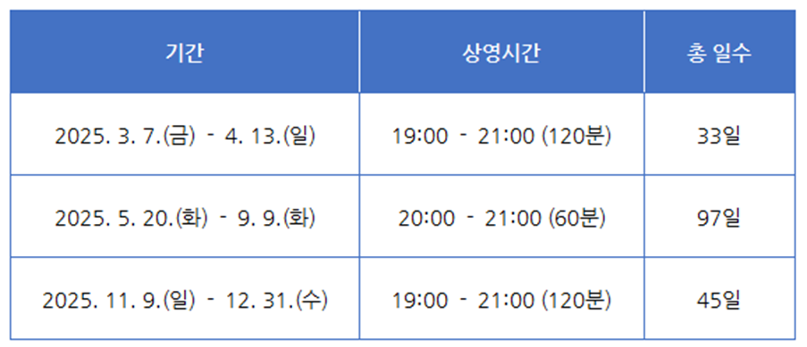 관람시간 안내 – 전체 상영/부분 상영 일정표