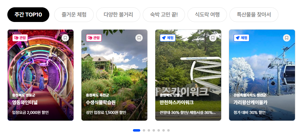 - 제주 : 렌터카 할인권 + 관광지 입장 패스 제공