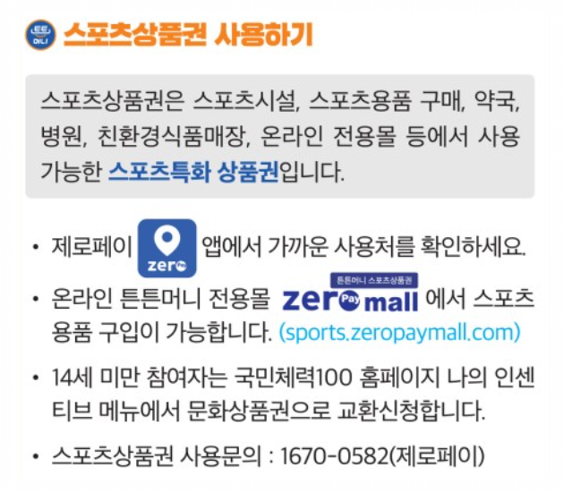 - 14세 미만: 문화상품권으로 전환 (국민체력100 누리집에서 신청)