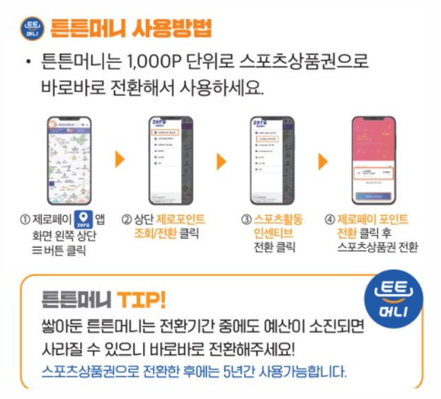 적립된 포인트는 제로페이맵 앱에서 스포츠상품권으로 전환 가능하며, 전국 제로페이 가맹점에서 현금처럼 사용할 수 있습니다.