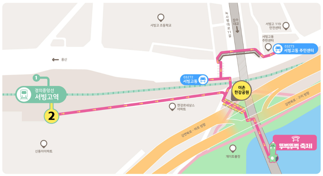 - 버스 이용 시, ‘세빛섬’ 또는 ‘반포한강공원’ 정류장에서 하차 후 도보 이동