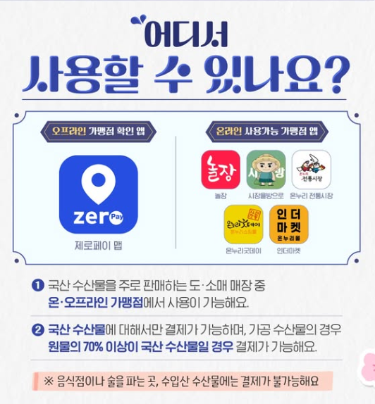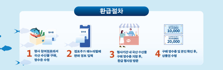 • 참여처 : 전국 오프라인 수산시장, 대형마트, 온라인 쇼핑몰, 지자체 특산몰 등 300여 곳
