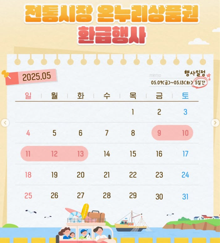 • 행사 기간 : 2025년 5월 9일 ~ 5월 13일