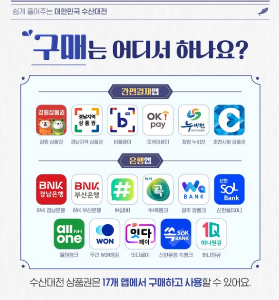 대한민국 수산대전, 제철 수산물 할인행사 안내, 온누리상품권 및 제로페이 행사매장, 수산물 카드뉴스 제공